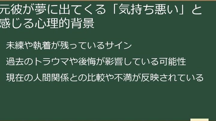 夢において元彼が登場する場合、以下のような心理的な要因が考えられます。