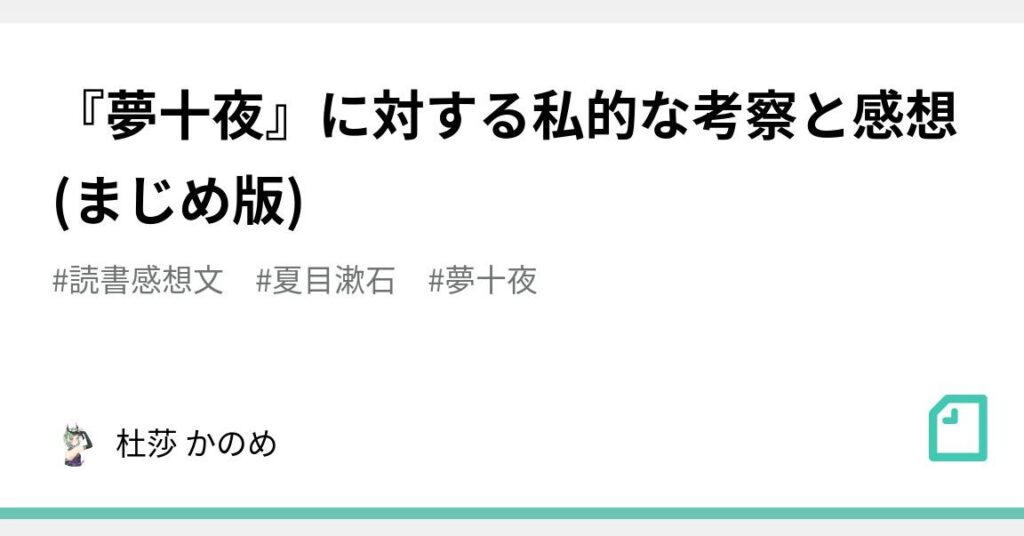 「夢十夜」は、夏目漱石による短編集で、夢の不思議な世界を描いています。作品は10編の短い物語から成り立ち、それぞれが異なる夢の情景やテーマを探求しています。