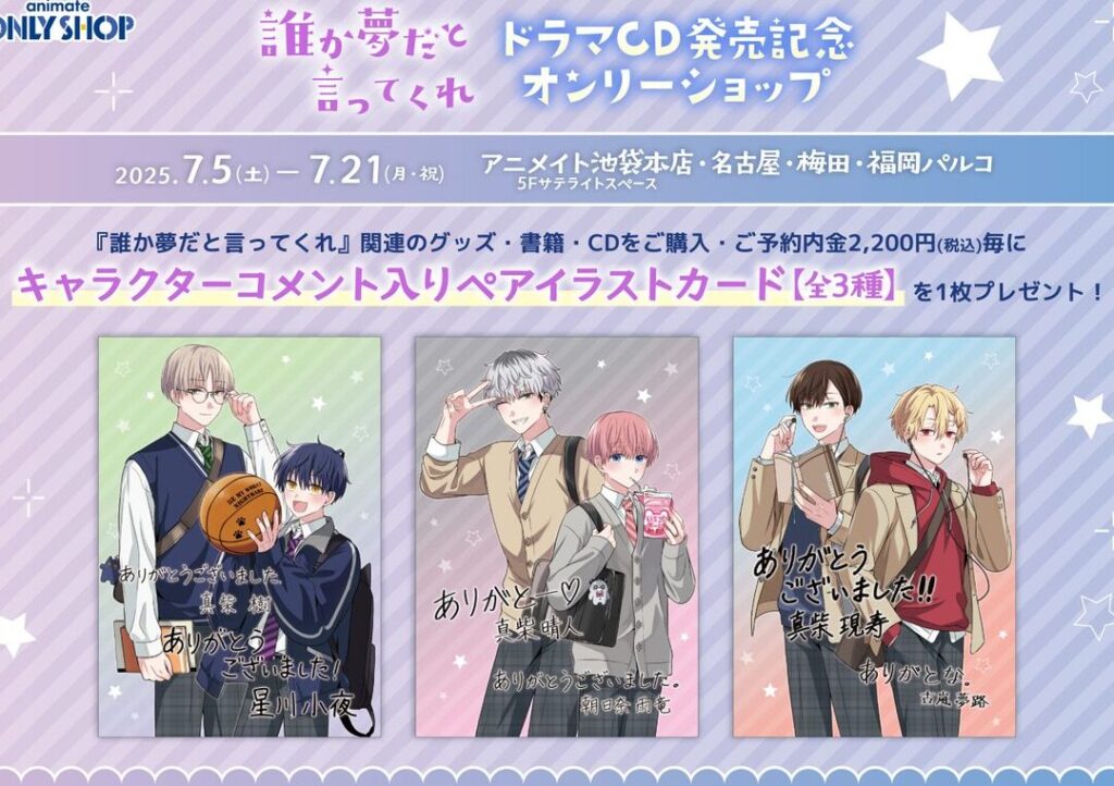 「誰か夢だと言ってくれ」5巻を予約すると、限定イラストカードがもらえます。このカードは数量限定で、一部店舗では特別なデザインが用意されています。早期予約で得られる特権として、サイン入りポスターやブックマークも選べることがあります。また、予約期間は発表から数週間と限られているため、確実に手に入れたい方は早めの行動が求められます。